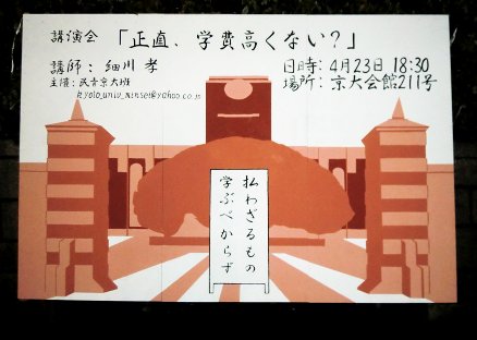 | 内容 | 細川先生による講演会。 日本の大学の学費問題について、経営学的な視点から話していただく予定です。 |